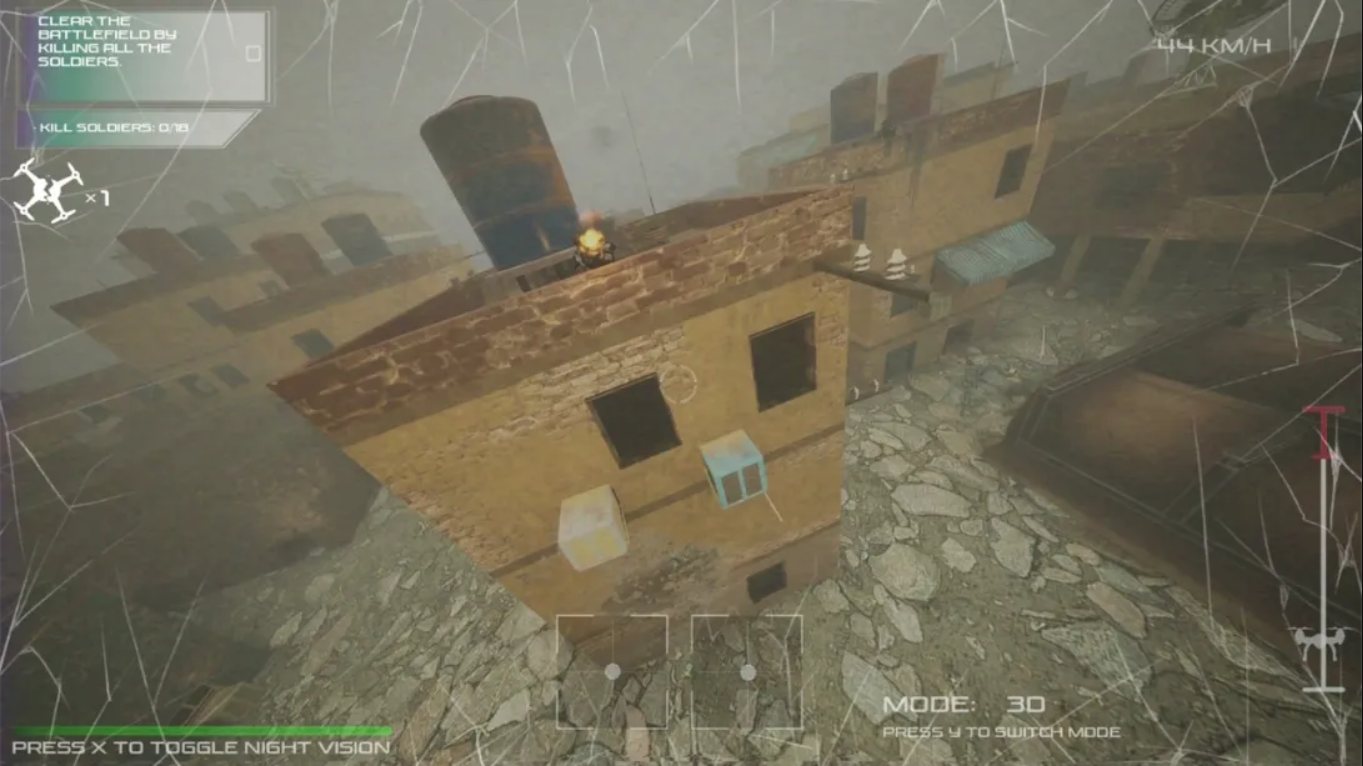 沉浸式FPV视角:从无人机摄像头的第一人称视角飞行,穿越敌方防空火力网,感受身临其境的战场压迫感。